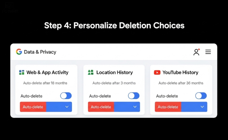 If auto-deletion settings aren’t enough, Google also provides additional tools for managing specific data types: